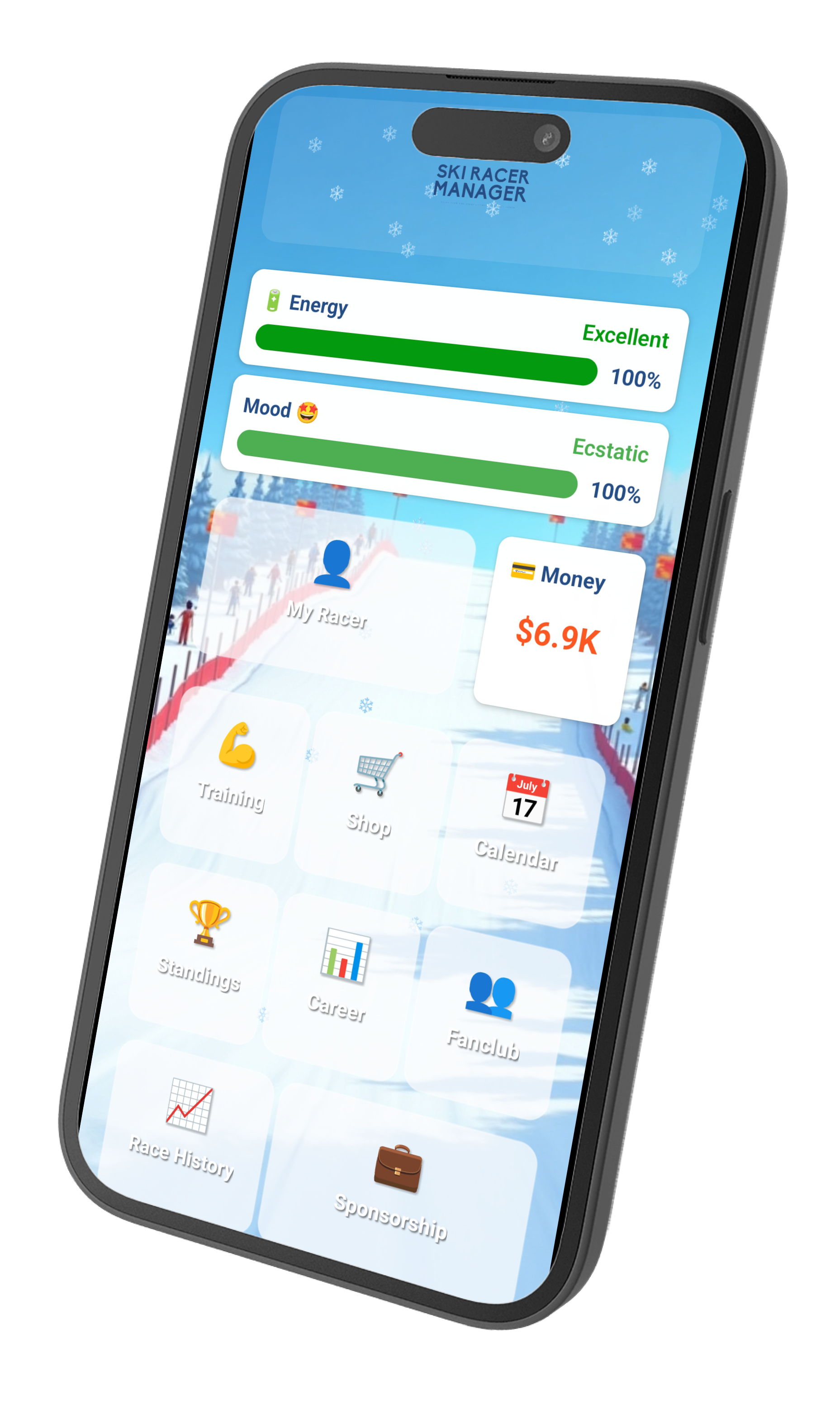 Comprehensive management of a skiing champion with realistic mechanics and dynamic races.