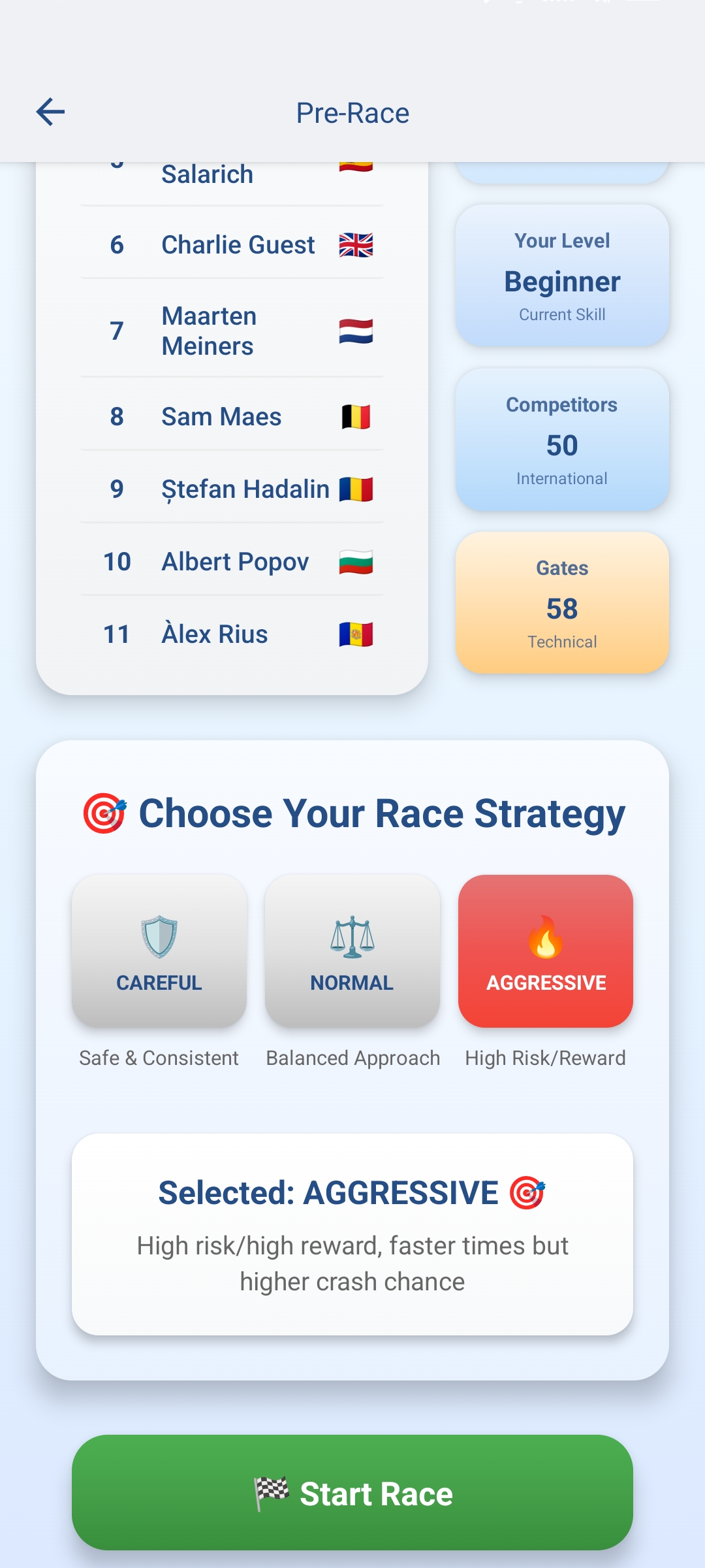 Every training makes your skier a bigger champion and better racer. Train him after every race and become a skiing legend manager.