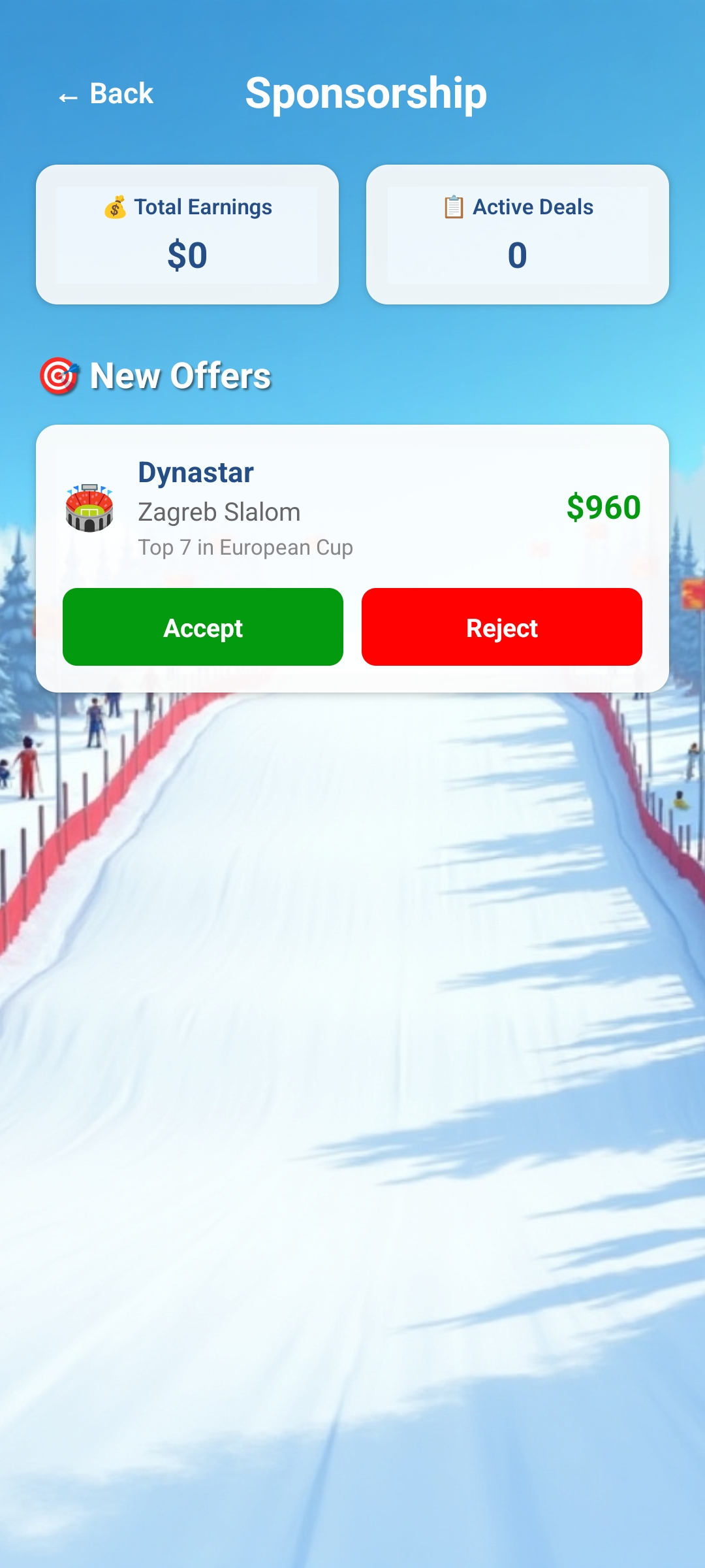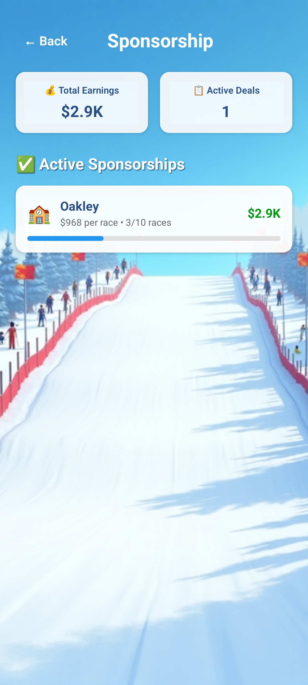 Quality performances in races bring not only fan interest but also sponsor interest. Choose between sponsor offers, sign contracts and earn extra money needed for equipment purchases and fan club management.